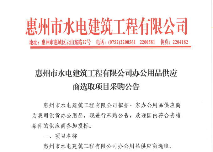 惠州市水電建筑工程有限公司成立于一九六四年四月,隸屬惠州市水務集團有限公司,是一家國有綜合性施工企業,主營水利水電工程、房屋建筑、市政工程等施工業務。公司擁有水利水電工程施工總承包一級、建筑工程施工總承包一級、市政公用工程施工總承包一級、公路工程施工總承包三級,公路路基、路面及建筑裝修裝飾專業承包二級,環保工程、機電安裝、河湖整治、輸變電工程專業承包三級等經營資質……